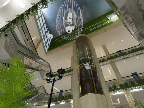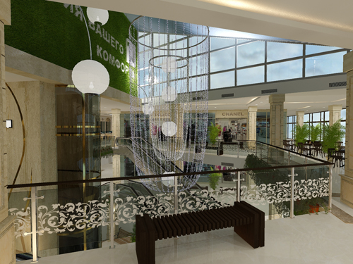 Дизайн внутреннего пространства торгового центра. ![]() Существуют определенные нормы или скорее рекомендации в отделке общественных мест с высокой проходимостью. Использовать практичные материалы. Полы соответственно керамогранитные. Они очень хорошо смотрятся. На сегоднешний день есть великое множество цветов и фактур такой плитки. ![]() Стены комбинированные. В некоторых местах это травертин. Сейчас широко используется в отделке фасадов и интерьеров. И стеклообои, покрашенные краской Tikkurila. ![]() В холле первого этажа спроектирован бассейн с фонтаном. В воде специальные водозащищенные сферические светильники. ![]() ![]() На другие этажи здания можно попасть тремя путями. Это лестницы, эскалаторы и лифт. ![]() Лифт как центральное ядро торгового комплекса имеет внушительный вид! Отделанный травертином выглядит как массивная колонна, внутри которой курсирует вверх-вниз стеклянная капсула. ![]() На самом верхнем этаже расположена зона общепита. ![]() Не ускользает из виду и огромная люстра, свисающая из-под самого верха. Она выполнена ввиде двух колб, вставленных одна в другую. И множества мелких лампочек, составляющих эту конструкцию. ![]() По задумке, привлекающим внимание посетителей, должна была быть "зеленая стена". На ней интересный элемент. Это силуэт сидящего человека, полученный путем направленного светового потока на определенный трафарет. Идея была позаимствована у известного японцкого художника Куми Ямашита. ![]() ![]() ![]() ![]() ![]()   |