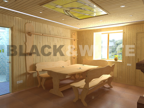 ![]() Комната отдыха. Природные материалы - лучший вариант для хорошего отдыха. Стол и скамейки по дизайнерским чертежам изготовливали вручную. Для полноценного расслабления после хорошей парной Приятно посидеть и выпить чашку чая, наслаждаясь чарующим светом неонных ламп, вмонтированных по периметру потолка в сочетании витражными узорами желтых оттенков. ![]() В конце комнаты расположен встроенный гардероб, для бытовой техники - сделаны ниши соответствующих размеров. ![]() Классический камин, облицованный плиткой под мрамор гармонично вписывается в интерьер комнаты. ![]() Из комнаты отдыха, через стеклянную дверь мы попадаем в просторное помещение с бассейном. ![]() Большие оконные проемы делают ощющение открытого бассена. В вечернее время можно включить светильники, спрятанные на колоннах, тем самым создать интимную обстановку. ![]() На стенах - пейзажи ижных морей. ![]() И без того, большое помещение, увеличено вставкой зеркала в каменную "глыбу". ![]() Вторая дверь из комнаты отдыха ведет в душевую и сауну.   |