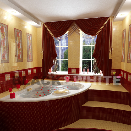 ![]() В доме гостям всегда рады. Чтобы они чувствовали себя как дома - сделали отдельную комнату для гостей. ![]() Спальня родителей оформлена в классическом стиле. Кровать находится на подиуме с подсветкой. ![]() В спальне есть отдельный санузел. ![]() Санузел в красно-желтых цветах. Джакузи встроена в подиум со ступенями. Как приятно расслабится в теплой ване с видом на уличный пейзаж. ![]()