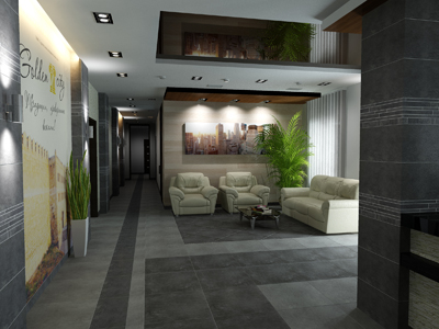 ![]() Golden City - Традиции, проверенные годами! Таков девиз этой успешной компании. Представляем вам дизайн офиса, а именно отдельно стоящего административного здания. Ниже показаны дизайнерские решения для кабинетов, бухгалтерии, холла. Дизайн холла (дизайн коридора) выполнен в современном стиле. Можно было бы сказать минимализм. Прямые линии, строгость и ничего лишнего. ![]() Так как компания занимается реализацией камня было решено внести его в интерьер помещений. Клиенты компании, посетившие данный офис, сразу замечают большое количество камня на стенах. Комбинация камня, штукатурки, темной керамической плитки на полу и ламината на стенах и потолке создают современный, европейский интерьер. Лиминат использовался фирмы Tarkett. ![]() Заходя в такой офис - можно сразу определить солидность и авторитет компании. ![]() Линии, образованные контрастом напольной плитки, как-бы указывают направления движения по холлу. Плитка польская фирмы Paradyz. ![]() Дизайн ресепшина. Reception design. Стойка администратора, расположенная рядом с входом, выполнена из камня и черной глянцевой столешницы. Стильно и лаконично! Возле стойки администратора находится подвесная полка из глянцевого материала МДФ. Задняя часть выполнена зерклом. В этом интерьере очень часто используется прием ассиметрии, что так характерно для нашего стиля. ![]() И конечно удобные кожаные диванчики. Диваны фирмы Nolte Kuchen - салон немецкой мебели. Что расположена в ЦУМе на нулевом этаже города Караганды. ![]() Все освещение в здании планировалось использовать турецкого качества фирмы Teksan. Встраиваемые светильники, диодная LED подсветка, софиты и LED панели - все подоюраны в современном сдержанном стиле. ![]() Ну и какой же солидный офис без еще более красивого кабинета руководителя! ![]() При появлении новых материалов на рынке города мы, как дизайнеры, стараемся придумать креативное решение для использования их в интерьере. Одними из первых нами было предложено использовать на стенах панелей ЛДСП с текстурой кожи аллигатора. ![]() ![]() ![]() Дизайн кабинета директора был решен в современном стиле. Сочетание камня, дерева и вставки панелей под кожу аллигатора.   |