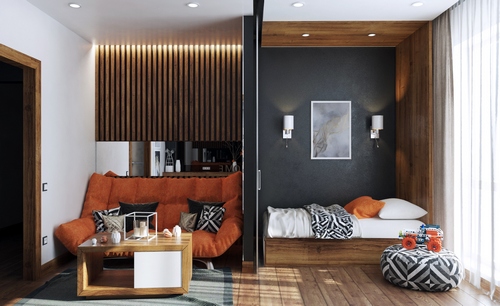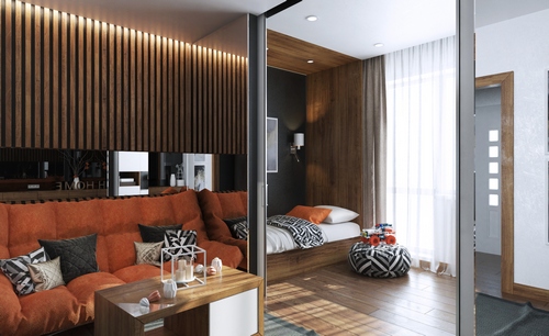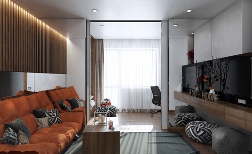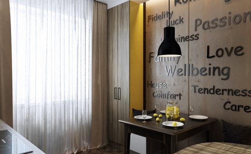 Приветствую вас, дорогие читатели! Я уже публиковал пару картинок этого замечательного творения нашей фирмы INSAIT-design в популярной сети instagram . И, сейчас, когда появилась возможность, я вновь сел за ноутбук и с воодушевлением набираю этот текст. Хотелось бы сказать, что все мои ожидания по поводу этой квартиры воплотились, пока что, в виде картинки. Но это вопрос времени. Итак, начнем! ![]() А начну я обзор с зала. Дизайн квартиры своеобразный! Здесь множество мелких декоративных вещей на которые обращаешь свой взгляд, внимательно изучая каждую картинку... ![]() Детали-детали! Именно детали в составе с отделкой стен создают тот эффект притяжения. Декоративные рамки, необычный пуф, замысловатые вазочки и подставки. Я не представляю этот интерьер без них. ![]() Немного общих данных. Площадь - 54 квадратных метра. Две комнаты, кухня, длинный коридор и раздельный санузел. Квартира в типовом панельном доме. Это, конечно, немного сковывает руки умелых дизайнеров. Но мы не пасуем перед трудными задачами! ![]() Так, как перепланировка невозможна (смотри табу выше), будем исходить из того, что есть. Перед нами стояла нелегкая задача, добавить еще одну комнатку! И вот вам решение. Зал площадью чуть больше шестнадцати квадратных метров мы отделили метровыми перегородками с зеркалами и системой раздвижных дверей. ![]() Получилось очень здорово! Получилась еще одна комната. Ее можно использовать как кабинет или гостевую спальню. Из-за того, что в интерьер добавили зеркала на перегородках, визуально зал не стал меньше. И так, как основное время раздвижные двери открыты то эти помещения сливаются в одно. Воздушный, светлый, атмосферный интерьер! ![]() Кабинетная часть выполнена из белого мдф в комбинации с текстурированным деревом. Здесь есть все необходимое для полноценной работы. Белоснежный стол, комфортное кресло и системы хранения. ![]() В отделке этих помещений использовалось много дерева. Люблю природные материалы. Экология! Все дела... В зале ярким пятном является диван. Оранжевый диван на деревянной с зеркалом стене. А напротив телевизионная стенка. Здесь так же есть системы хранения. Навесная полка для всяческих мелочей и подключаемой техники, шкафы, и декоративная ниша с цветком. А эти пуфы! Вы только взгляните на них!!! ![]() С дизайном зала, кабинета, спальни или детской комнаты мы разобрались. Идем дальше. Кухня. Серо-коричневые тона с желтыми вставками, множество шкафов, обеденный стол возле изысканной стены с приятными надписями и урбанистический темный светильник. Круто! ![]() Шкафы - это всегда плюс для любой хозяйки на кухне. Если есть новые свободные полки - всегда найдется чем их занять! Чудеса, да и только! Обратите внимание на тумбы. Они используются в качестве посадочных мест. А при необходимости можно добавить и обычные стулья. Ну это когда приходят гости. ![]() Казалось бы, где найти место для холодильника? Но он гармонично вписался в кухонный гарнитур. ![]() Да, мы не обладаем огромной столешней для приготовления, как в шикарных особняках! Но и тут есть достаточно места для любой хозяйки! Слева от мойки. ![]() Качественные материалы, бытовая техника и фурнитура для кухни позволят превратить повседневную рутину в удовольствие. ![]() Пол с электрическим подогревом. Рабочая зона с яркой диодной подсветкой. ![]() И тут мы переходим к тому с чего следовало бы начать. Кор