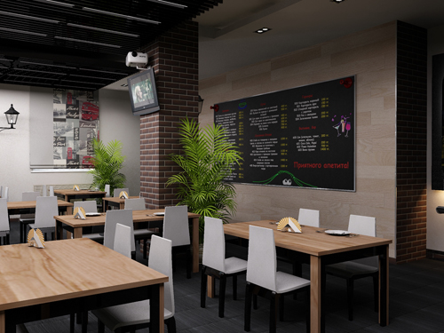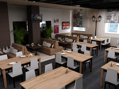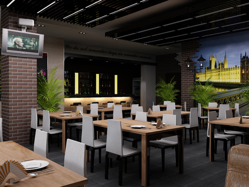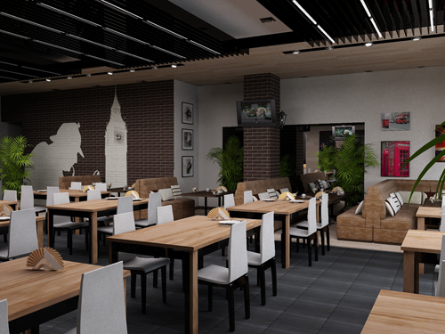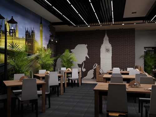 Кафе с привкусом Англии. ![]() Кафе эклектичное, по-современному красивое, и со своими особенностями! ![]() Особое внимание привлекает потолок, точнее его часть. Это подвесная конструкция из черного глянцевого материала, со встроенными в него светильниками. Своеобразный потолочный дизайнерский светильник. ![]() Стенка с изображением Тауэра, так же является зоной внимания. Но стена играет роль разделения зала и раздаточной кухни. Так, как это заведение в дневное время работает в формате столовой с самообслуживанием. Организованная очередь проходит справа-налево, и не смущает посетителей ближних столов. А в вечернее время это, конечно же, замечательная картина с перспективой. ![]() В помещении есть клинкерная стена с изображением силуэта известного сыщика, Шерлока Холмса. Как вы уже заметили, в заведении, все элементы преувеличены. Это диктовано высокими потолками и большим открытым пространством. ![]() В отделке используется несколько материалов, которые в комбинации смотрятся очень достойно. Это штукатурка, клинкерная плитка и ламинат. ![]() Противоположная стена от входа - это своего рода вип зона. Возле ниши с зеркалом, которая смотрится как проем в следующий зал, расположена мягкая зона с удобными диванами. И даже в отделке она мягче за счет ламината на полу и потолке. Домашнее пространство. ![]() Уличные светильники это больше декоративный элемент, нежели источник освещения. Они хорошо смотрятся на светлом фоне стен, а так же рядом с большой картиной Англии. ![]() ![]() ![]() Тема трафарета вкралась и в санузел. На стене штукатуркой и красками через трафарет нарисован силуэт ночного города. ![]() ![]()   |