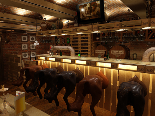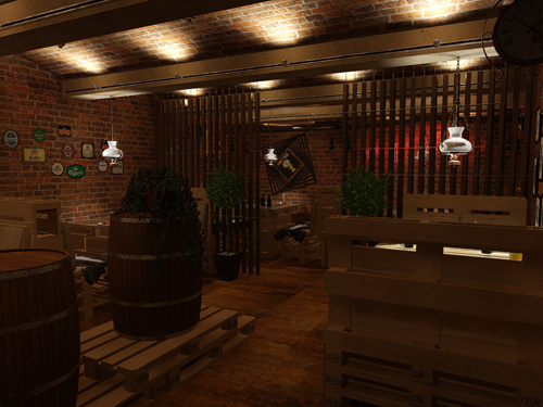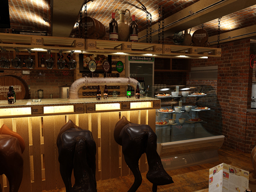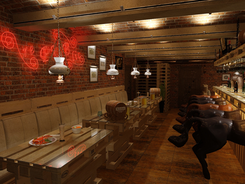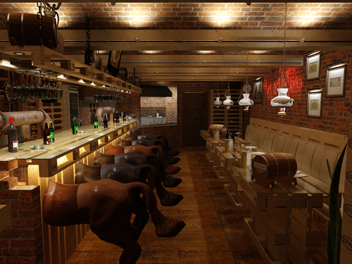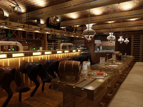 ![]() Кафе rePUBlica находится в центре Москвы. ![]() Здание старой постройки. По замыслу дизайнера было сохранение естественного материала стен и потолков. Во-первых, это красиво смотрится в данном помещении, а во-вторых большая экономия денежных средств на отделку помещения. ![]() В качестве посадочных мест и столов, а так же барной стойки использовались грузовые паллеты. На столах они накрыты каленым стеклом. Удобно в обслуживании и креативный вид. Понятное дело, на деревяшках сидеть не очень комфортно. Поэтому мягкие подушки с материалом под мешковину решили этот вопрос. ![]() Прекрасным и новым решением является открытая зона кухни. За стеклом можно видеть, как готовится мясо на гриле. К тому же это вызывает доверие у посетителей. Ведь поворам данного заведения нечего скрывать. А процесс приготовление можно подать как интересное представление с огнем на сковородах и ловкими манипуляциями шеф повара. ![]() Для любителей проверить свои навыки в игре дартс после пары кружек пенного во втором зале есть специализированная для этого зона. ![]() Вообще питейная культура очень развита в России. Не так конечно, как Германии, Англии или Чехии, но есть и у нас любители пенного напитка. Особенно если есть элитные сорта и большой ассортимент пива и закусок к нему. ![]() Очень часто в таких заведениях собирается много народу, когда проходит какой-нибудь значимый матч по футболу или хоккею. ![]() Собравшись с единомышленниками да и просто в хорошей компании, можно болеть за свою страну или клуб. ![]() Интересное решение использование на полу керамогранита под ржавчину на металле. ![]() В качестве заполняющего света использовались светильники, устанавливаемые на шину. Они хорошо подсвечивают сводчатые потолки, оставляя интересные световые пятна. ![]() Нестандартное и креативное решение использовать в качестве барных сидений фигуры лошадей из стеклопластика. Точнее их задние части... ![]() Забавно сейчас, описывая этот проект, по прошествии нескольких месяцев смотреть на эти картинки. Интересно, воплотилась ли эта идея в жизнь? ![]() ![]() ![]()   |