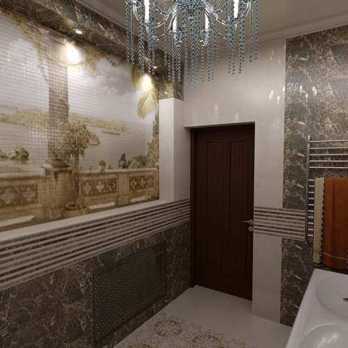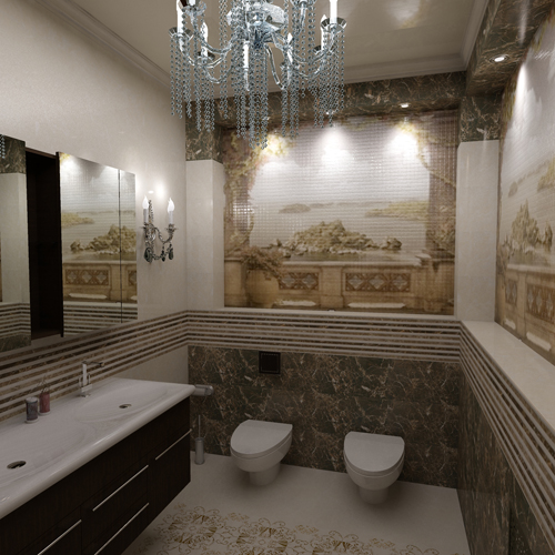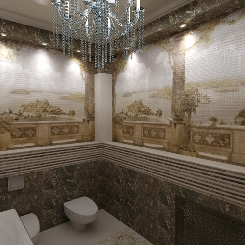 Санузел выполнен в испанской плитке Imperial. ![]() Этот санузел уникален благодаря большой картине. Картина эта сделана из стекломозаики фирмы Fa-Ro. ![]() ![]() ![]() ![]()   |