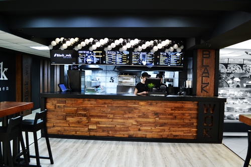 ![]() На этот раз я радую вас новым шедевром нашей студии. Дерзкий, лаконичный, мужской дизайн wok кухни. ![]() #Black_wok open kitchen это кафе в центре города в торговом доме ЦУМ. Среди общей массы кафешек Black_Wok выделяется цветом! ...и фактурной барной стойкой, и красивыми столбами, и ... Да тут каждая деталь уникальна! ![]() ![]() Нижняя часть барной стойки так же выполнена из дерева. Это массив разновеликих прямоугольных досок, скрепленных между собой. В вертикальной плоскости они образуют неровную, красивую поверхность. ![]() На свободной стене мы разместили фотообои фирмы "Ортограф" ,официальными диллерами которой мы являемся, с логотипом кухни. Это существенно сократило время отделки.   |